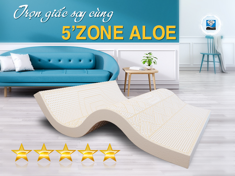 Vậy còn không gian phòng ngủ thì sao? Diamond 5'Zone Aloe - tấm nệm được tạo ra từ 100% cao su thiên nhiên sạch khuẩn với thiết kế 5 vùng nâng đỡ, tương ứng 5 vị trí trọng điểm của cơ thể: đầu, lưng, hông, đùi và chân. Kết cấu 5 vùng cũng tượng trưng cho yếu tố ngũ hành trong phong thủy. Với mục đích đó, chúng tôi mong muốn khi ngũ hành hòa hợp, bạn sẽ có trải nghiệm giấc say trọn vẹn nhất.