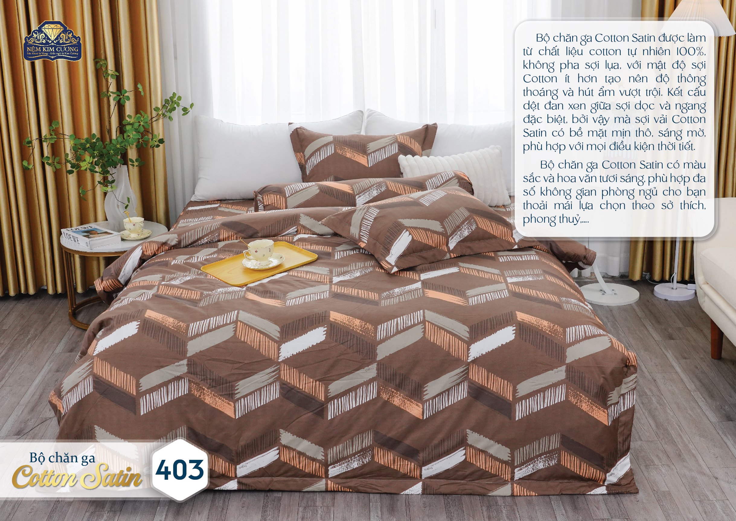 Bộ chăn ga Cotton Satin được làm từ chất liệu cotton tự nhiên 100%, không pha sợi lụa, với mật độ sợi Cotton ít hơn tạo nên độ thông thoáng và hút ẩm vượt trội.